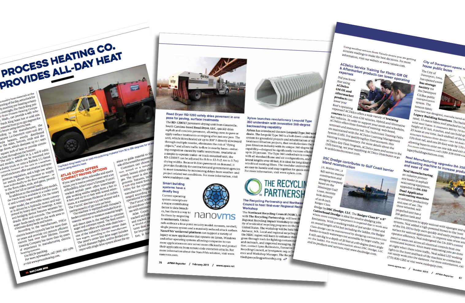 - Articles appear in Asphalt Contractor; Asphalt Pro; Pavement Preservation Journal; Aggregates Manager; Rock Products; Pit & Quarry; Stone, Sand & Gravel Review; and more